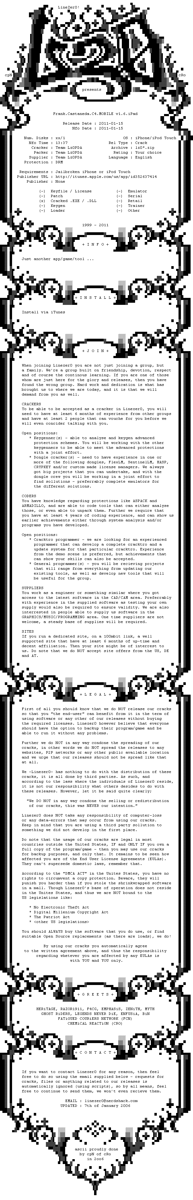 Frank Castaneda C4 MOBILE v1.5.1 iPhone iPod Touch keygen by Lz0PDA: Frank Castaneda C4 MOBILE v1.5 iPhone iPod Touch keygen by Lz0PDA: